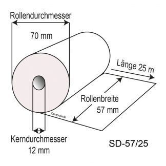 SD-Kassenrolle 57mm x25m x 12mm, weiß, 2-fach